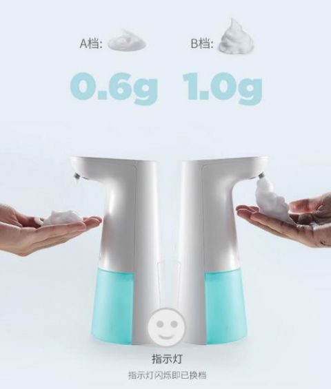 根据每个人需求的不同,卡贝自动泡沫机提供了两档出沫,A档0.6g,B档1.0g,通过长按三秒进行切换,不同的人可以根据需求取用,避免浪费节约实用。