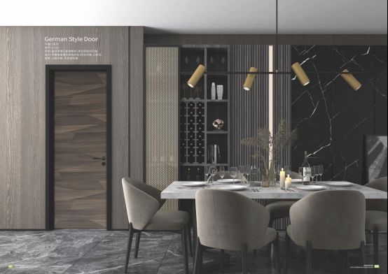 新豪轩低碳木门的设计理念以现代简约为核心,自然、艺术元素为底蕴,简约不简单的设计中,糅合了经典与时尚元素,精雕式线条搭配玻璃、镶嵌金属,增添灵动的立体感与轻奢意蕴,彰显现代高品质生活的格调。