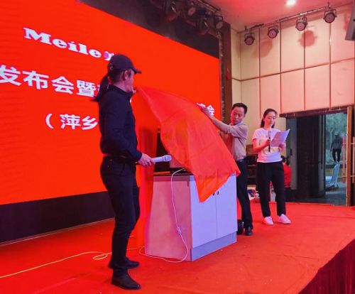 接着熊总与美勒萍乡总代理刘总对美勒全新研发的分体式集成灶Z19揭幕,美勒分体式集成灶Z19闪耀面世,瞬间成为了全场关注的焦点。