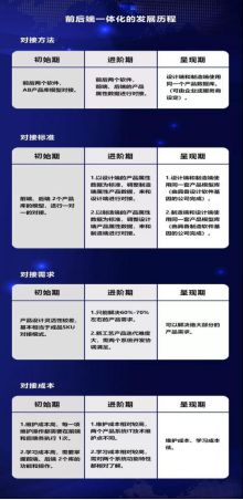 从图表上,我们可以清晰看到初始阶段和过渡阶段的不足,不过,由于技术供应商参差不齐加之企业用户认识不足,目前上述3个“前后端一体化”阶段都广泛存在于行业中。
