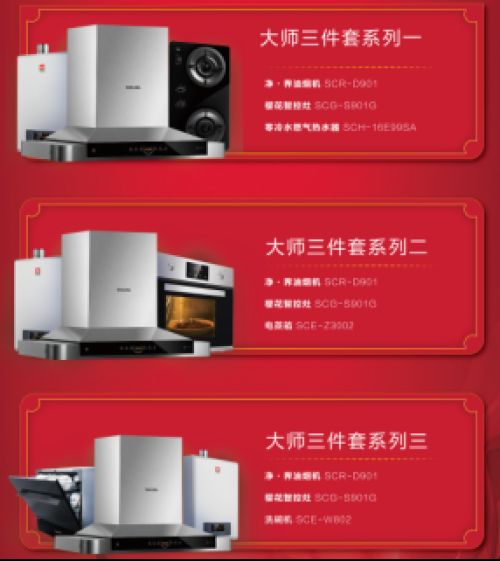 SAKURA樱花大师三件套系列触底优惠,是SAKURA樱花厨卫产品系列化战略布局的重要一步,满足更多不同人群的需求,守护消费者健康厨房品质生活,给家人更干净、智能的厨房环境,守住爱的味道!