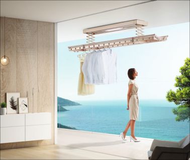 智能化设计令操作更简单、便捷。无线智能遥控,界面一目了然、操作简单,对准晾晒机轻按向下箭头,嘀~一声,晾杆下降,如升降中感应到障碍物,会立即发出警告并停止运作,实现智能停机,为安全保驾护航。