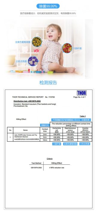 而BB威宝(baby SWIPE)玩具餐椅喷雾清洁剂无味、无毒、环保,除菌率达到99.99%;含医疗级除菌成分,经过世界权威实验室测试证实,达到无毒级别,无酒精,不含有机挥发性化合物、香精、色素、漂白剂及其他有害成分。