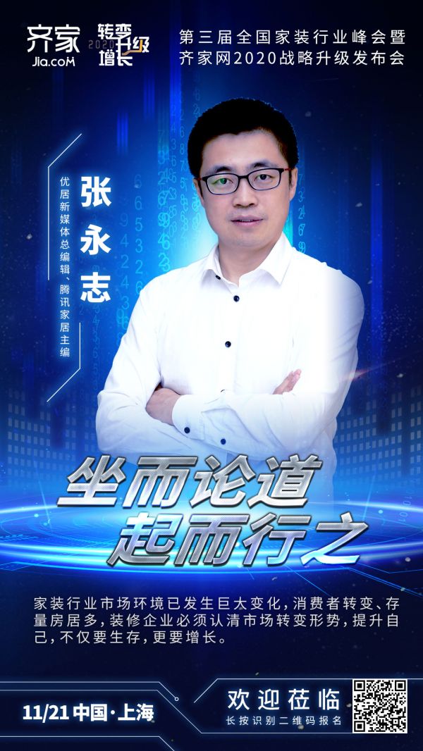 目前,腾讯家居主编张永志确认出席“第三届全国家装行业峰会暨齐家网2020战略升级发布会”,届时将以发表主旨演讲的方式,结合腾讯家居对行业的深度报道和分析分享真知灼见。