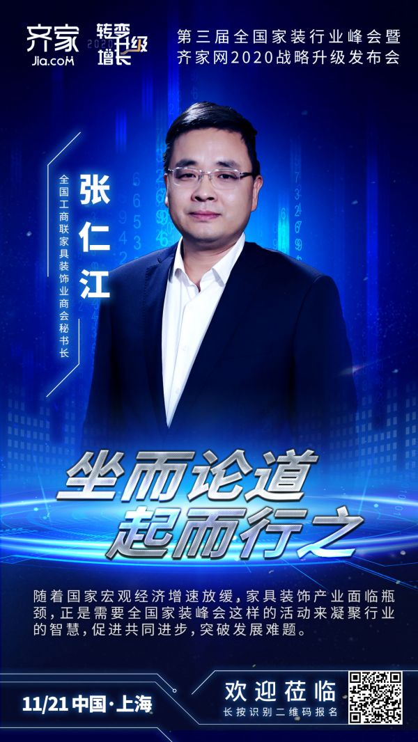 目前,全国工商联家具装饰业商会秘书长张仁江确认出席“第三届全国家装行业峰会暨齐家网2020战略升级发布会”,届时将通开场致辞的方式,从国家和产业高度,对家装企业的转型升级给出方向性的指导。