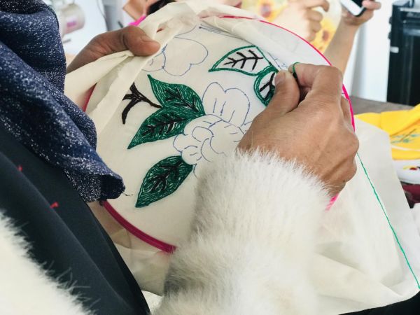 这天,我们参观了当地的刺绣工坊,体验了一把东乡刺绣的魅力。