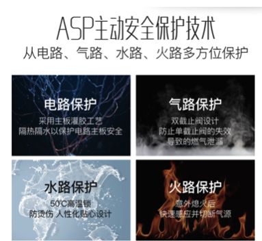 当然,热水器除了要洗得舒适之外,还得用的放心!在安全性能方面,华帝零冷水热水器i12047型号配置了ASP主动安全保护技术,从电路、气路、水路及火路多方位保护,防止煤气泄漏、烫伤、漏电等意外情况发生。