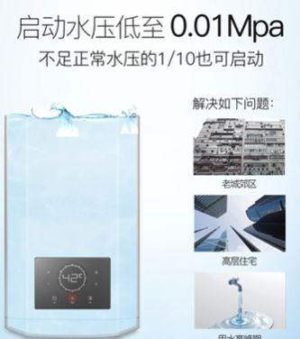 其他方面,我们发现华帝i12047产品也是具备很好的低水压启动性能,在水压环境在0.01MPa时,机器仍然可以照常运行出正常的大水量,这是很多低水压住宅环境用户必须考虑的功能之一。