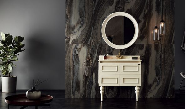 众所周知,实木浴室柜的基材因取自自然,没有任何化学污染,被认为是当前众多基材中,最健康、环保的一款原材料。用其制作浴室柜,成品后的柜子不仅自带一股木质的清香味,且木材的纹路非常明显,根本无需过多矫饰,即显得品质感十足。而这些优点,在日丰卫浴的实木浴室柜上皆有所体现,日丰实木浴室柜采用的是泰国进口橡胶木(实木中的一种)基材制作而成,为了更好的展现原材料的优势,日丰卫浴在设计时,仅用了简单的线条加以装饰,视觉上流畅而又舒适,加上柠檬黄与素净白的搭配,温暖而又不张扬,完全符合现代都市人追求健康、向往自然、简洁的家装需求。