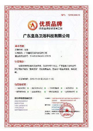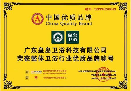 2019年11月,广东皇岛"成功入选整体卫浴行业优质品牌荣誉称号。此次评选活动,决定广东皇岛卫浴获奖的,是终端消费者的口碑和权威质量监督专家的严格认证。