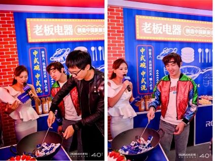 除了为开业仪式助威之外,乐队成员还要完成几项有趣的任务,那就是体验老板电器特别准备的互动游戏,感受中式烹饪魅力。