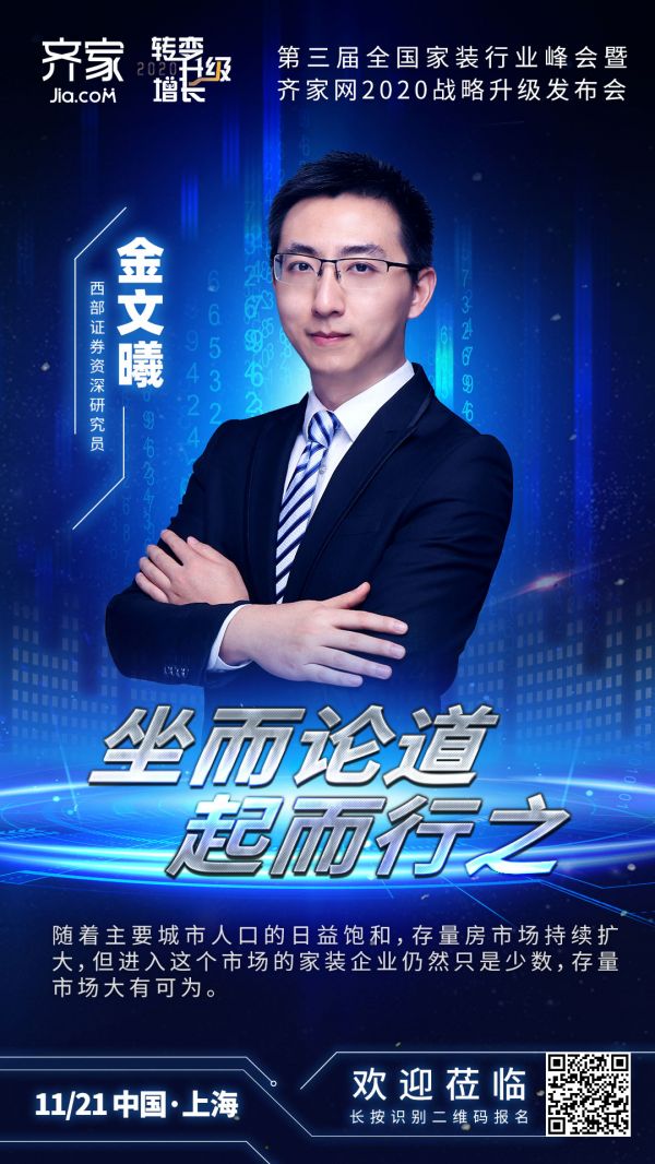 西部证券资深研究员金文曦确认出席齐家网第三届全国家装行业峰会
