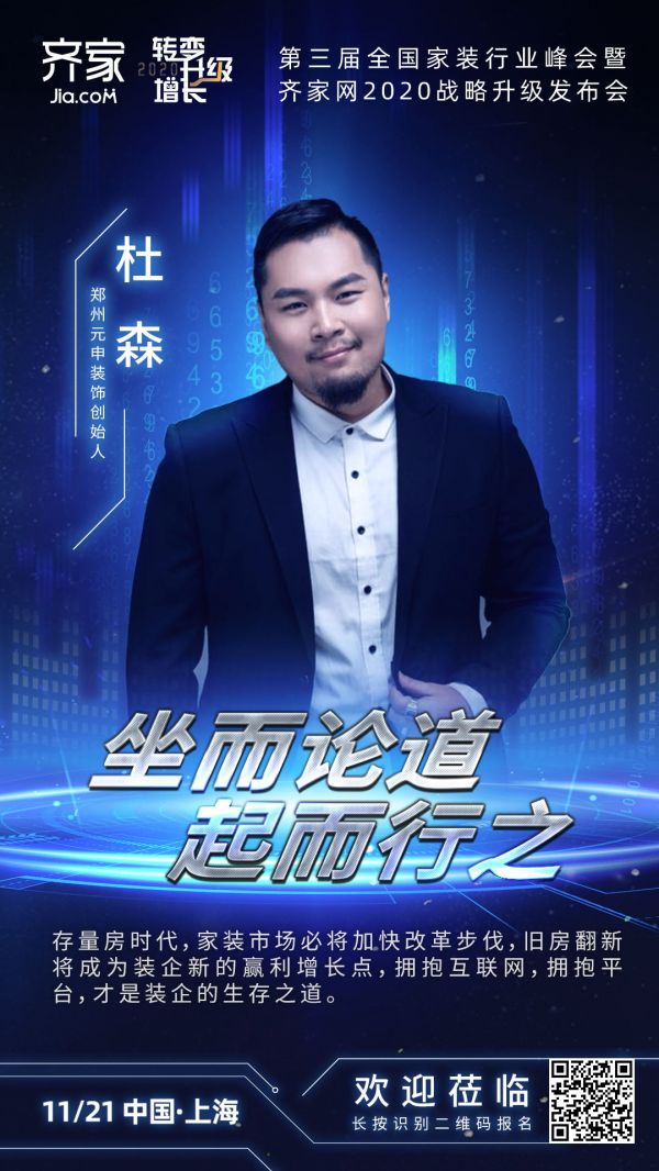目前,郑州元申装饰创始人杜森确认出席“第三届全国家装行业峰会暨齐家网2020战略升级发布会”,届时将通过圆桌讨论的方式,分享其在创业中取得迅猛发展的经验。