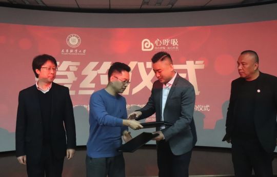 2019年11月15日,心呼吸总部天津箐润环保科技发展有限公司董事长刘永海、总经理韩健,与天津职业大学生物与环境工程学院副院长王韬、化工系教授郭勇确定战略合作关系,在天津职业大学校本部举行了隆重的签约仪式。