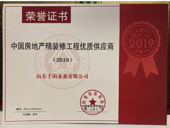 千山木业荣获2019“中国房地产精装修优质供应商”大奖