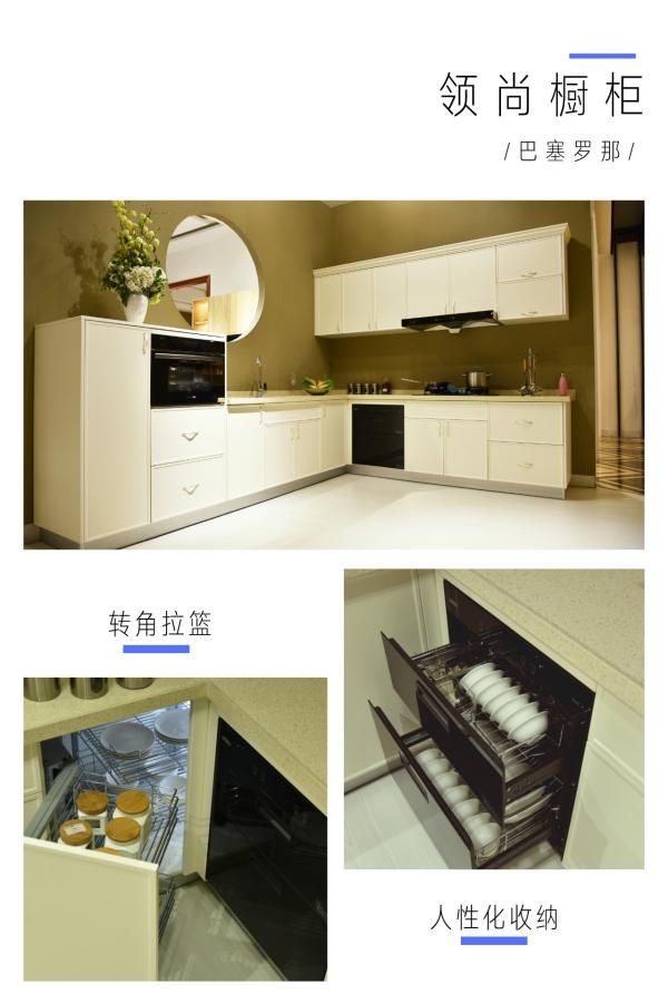 我家用的这款领尚橱柜巴塞罗那,吊柜+地柜组合搭配,增加收纳空间,不常用的轻物放吊柜,常用的重物放地柜,柴米油盐,锅碗瓢盆分门别类,可以大大地减少无序摆放占用过多的空间。