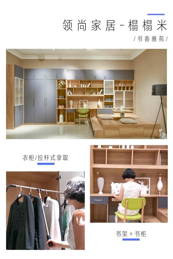 这款领尚家居榻榻米书香雅苑,可满足“书房+ 客房+休闲室+储物间”的多重需求,还可根据户型量身定制的组合家居,让家里空间瞬间多出四倍空间。