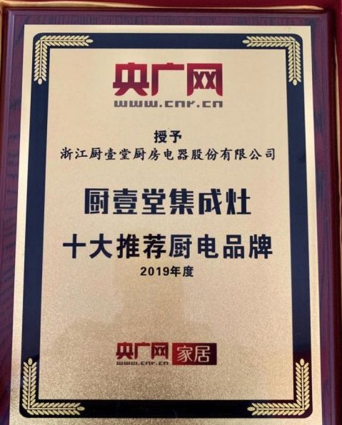 集成灶两大品牌厨壹堂集成灶凭借强大的综合实力,更是获得央广网授予的“2019年度十大推荐厨电品牌”,这是央广网对于厨壹堂集成灶创办至今所有成果的高度认可,更是对于厨壹堂集成灶为中国家居领域所做贡献的高度认可,也让无数消费者见证了厨壹堂集成灶的品牌实力,品牌知名度再上一个高峰。