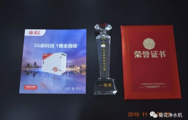 在2019科技创新创业大赛决赛现场,菊花中央净水三联供获得了政府领导、行业专家和投资人三方共同的认可,打出了83分的全场最高分,最终拔得头筹荣获一等奖,市委常冬海常委亲自为我司颁发奖杯和荣誉证书,这是对新菊电器的鼓励,也是对中央净水三联供技术及创造了巨大市场的褒奖,新菊电器将加快中央净水三联供的推广,让更多的消费者用上舒适健康水。