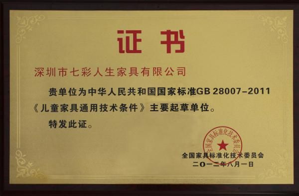 随着儿童家具安全问题的日益凸显,我国开始推动儿童家具标准的制定, 2012年8月1日,由深圳市七彩人生家具有限公司、国家家具及室内环境质量监督检验中心等为主要起草单位的,我国首个儿童家具强制性国家标准《儿童家具通用技术条件》(以下简称“国标”)正式实施。