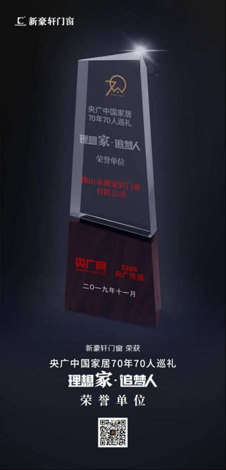 新豪轩门窗荣获中国家居70周年70人巡礼荣誉单位