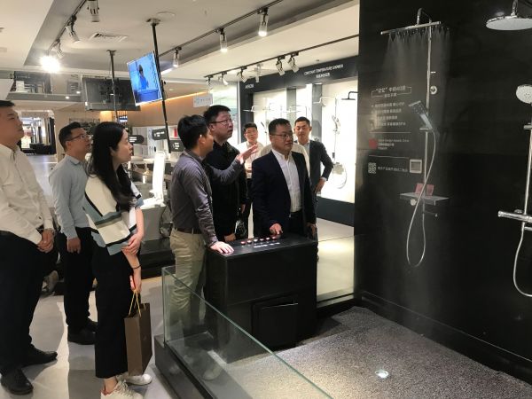 在乐华家居集团副总经理卢金辉、箭牌大客户事业部总经理孟肄、箭牌瓷砖事业部副总经理龚楚雄、箭牌战略总监朱明涛等领导的陪同下,亚厦装饰考察代表团参观了我司总部展厅,更深度地了解我司智能卫浴、定制卫浴等产品的设计理念、特色功能,同时也对箭牌卫浴产品及其在整体卫浴空间中的应用表示高度的赞许。