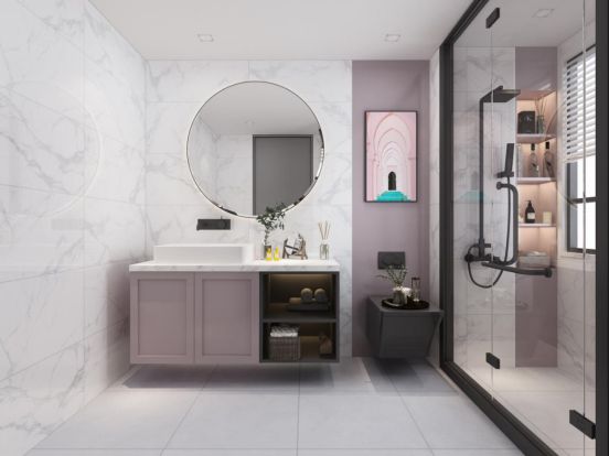 同时,卫生间大范围的墙面装饰还应考虑到是否与整个家居空间的风格相协调,并且在此基础上,利用大范围的墙面空间表达自己的独特个性。箭牌箭牌瓷砖新生代饰面砖彼特白,用谦柔大理石纹塑造出层次丰富的空间,低饱和度的纹理使得整体空间更具包容性,能够与外部空间自然衔接,让家居空间在达到一整体平衡的前提下,又能展现出不同的个性与风格。同时,其明亮的色彩能够弥补卫生间采光不足的缺陷,让环境更加明亮,让人们在使用中能够体验到更舒适更愉悦的感受。