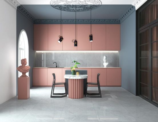 厨房与卫生间的墙砖铺贴,意在防水防污,便于清洁与打理。但是,随着生活水平的逐渐提高,人们不再只满足与功能性的装修。个性化与视觉化的墙面装饰逐渐开始受到人们的关注与喜爱。厨房,为我们的小家生起飘香的人间四季之味,这个充满爱的角落,需要我们用精致的生活态度去装点它。箭牌瓷砖新生代饰面砖拉古纳金,用一种优雅轻奢的色彩搭配方式诠释了新古典风格,打造出平和而富有内涵气韵的厨房空间。