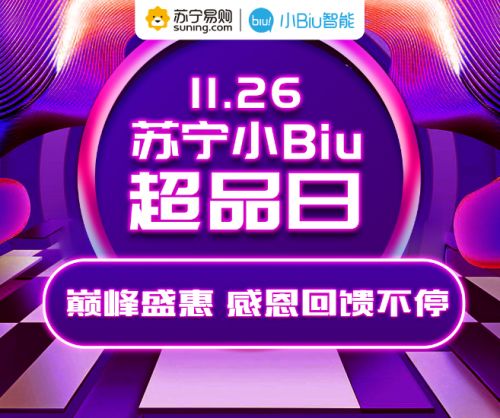 感恩节将至,浓浓的节日气氛扑面而来,苏宁小Biu带着对Biu粉的感恩之心,以超强福利掀起你的购物热情。即日起上苏宁易购参与预定,11月26日-11月29日抢小Biu全屋智能家电。打造舒适家居,温暖过一冬。智慧生活,小Biu无处不在!