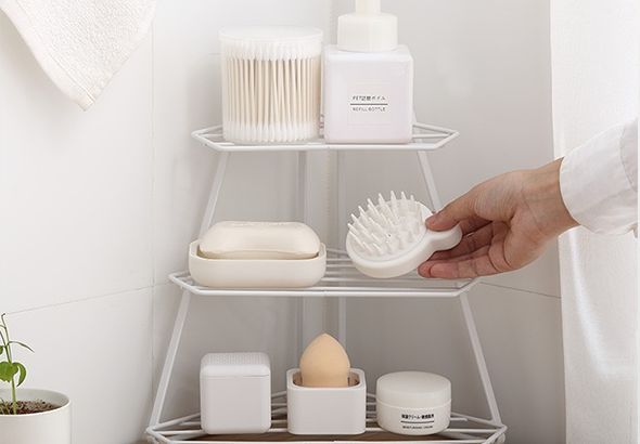 第一眼看见这款三角收纳架,就被它的高颜值吸引。白色铁艺、简约线条,特别的三角设计,整体十分美观特别。它的三角造型使得它能够和各种墙角契合,日常使用中可以将它放在桌子角落或浴缸角落,三层隔板可轻松放下洗手液、洗面奶、梳子等多种东西,而且底部还设置了防滑垫,不用担心它会滑落。