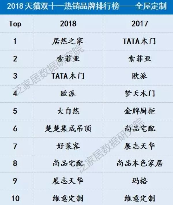 到了2018年,天猫全屋定制排行,原来排在第四位的梦天木门已在榜单不见了身影。