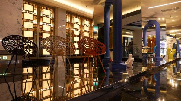 Versace“邂逅时空艺术”快闪店亚太巡展第4站,继续探索意大利特有的永恒神话。传说美杜莎代表着致命的吸引力,凡见到她的人即刻化为石头。唯一化解被美杜莎石化的方法,即是通过镜面而折射出意象,本此巡展的创意即来源于此。