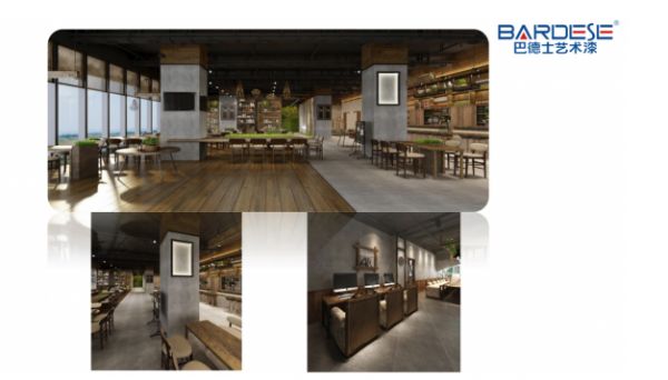 以巴德士清色印记艺术漆为例,产品原料天然,清水混合、安全环保,防水耐候、附着力强,可直接于毛坯水泥墙面进行批刮施工,无需腻子打底;效果方面,水泥色效果、清新高冷的颜值,简约大气,高端时尚,上市后便迅速成为高档住宅室内室外空间、写字楼、商业中心等各种场所,现代工业风首选的墙面装饰材料。