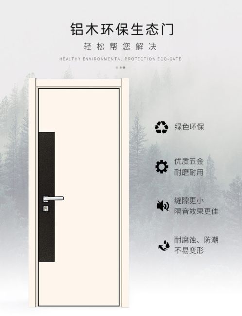 简典铝木生态门从绿色健康出发,研发出环保健康的高性能铝材组合,采用绿色生态木表面,环保系数已达到E0级高标准环保基材,不仅净化家中空气,同时兼具优越的物理性能,更做到了隔音、防潮防火、承受力度极高,使得产品颜值与功能性并存!