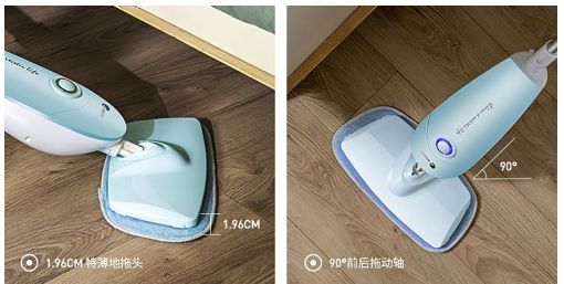 平时用传统拖把拖地时,像床底、沙发底、桌底这些地方很难拖到,而法格在细节上设计的特别细心,1.96CM特薄地拖头,可以升入沙发底部、床脚缝隙;90°的前后拖动轴能把家里的角角落落都清洁到位;拖把特别轻便,单手抱娃拖地也行,拖把杆也特别长,完全不用弯腰,拖完整个房间都不带累的。