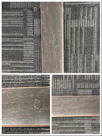 地板与水的日常接触,除了不小心滴落的水珠,还有潮湿的空气,所以实木地板的防水性能尤为重要,小编把水滴在地板表面,从图上可以看出,水滴呈饱满均匀形状,没有侧漏也没有流出地板表层,静置半小时后把水滴擦拭干净,地板表面没有任何变软膨胀的迹象,由此可见,天格普尔托地暖实木地板的防水效果不错。