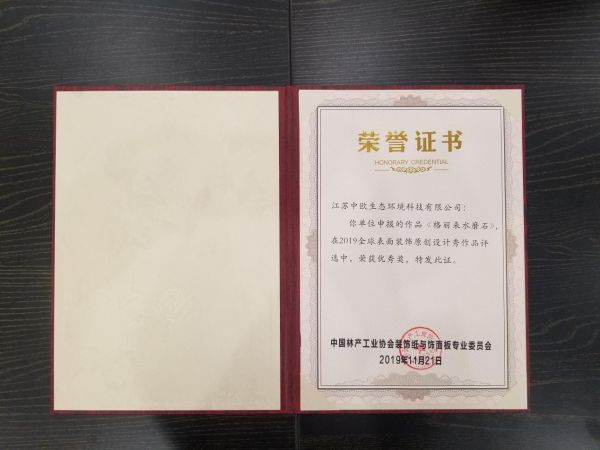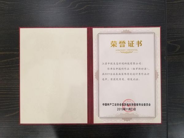 中欧科技选送产品获得本次全球表面装饰原创设计秀优秀奖