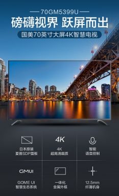 国美70英寸4K智能语音电视——磅礴视界 跃屏而出
