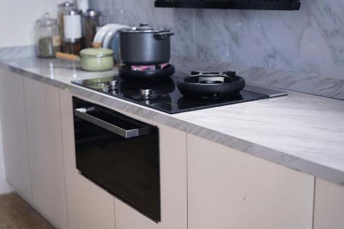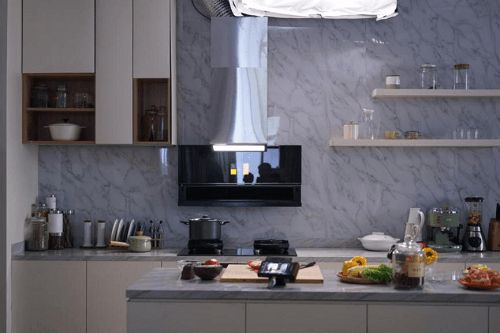 启动灶具或蒸烤烹饪机时,油烟机会自动打开,第一时间吸走油烟,烹饪时几乎闻不到任何油烟味,结束烹饪时它还会延时2分钟关机,吸走残余油烟,让厨房清新不油腻。烟机和灶蒸烤烹饪机都采用纯平镜面机身设计,表面光滑,一抹即净。