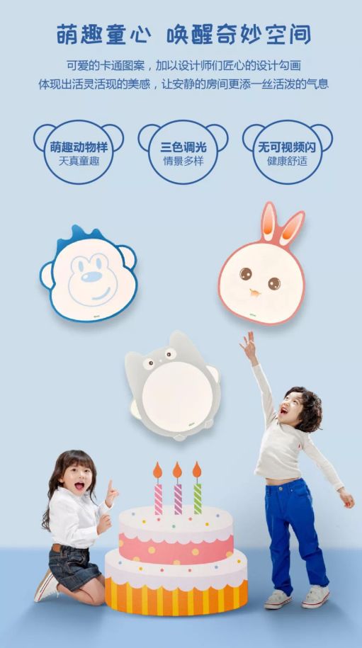 小器鬼童趣灯,还专门针对不同的孩童不同的性格,设计了不同款式和颜色的童趣灯。比如有粉色的吉祥猫和快乐兔,轻易就能营造出满室的可爱温馨感,更容易得到小女孩的青睐。