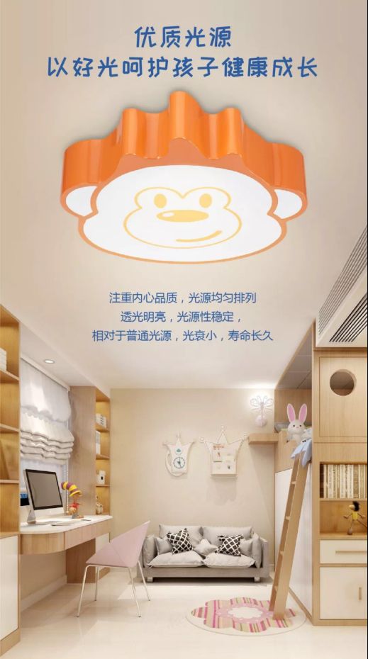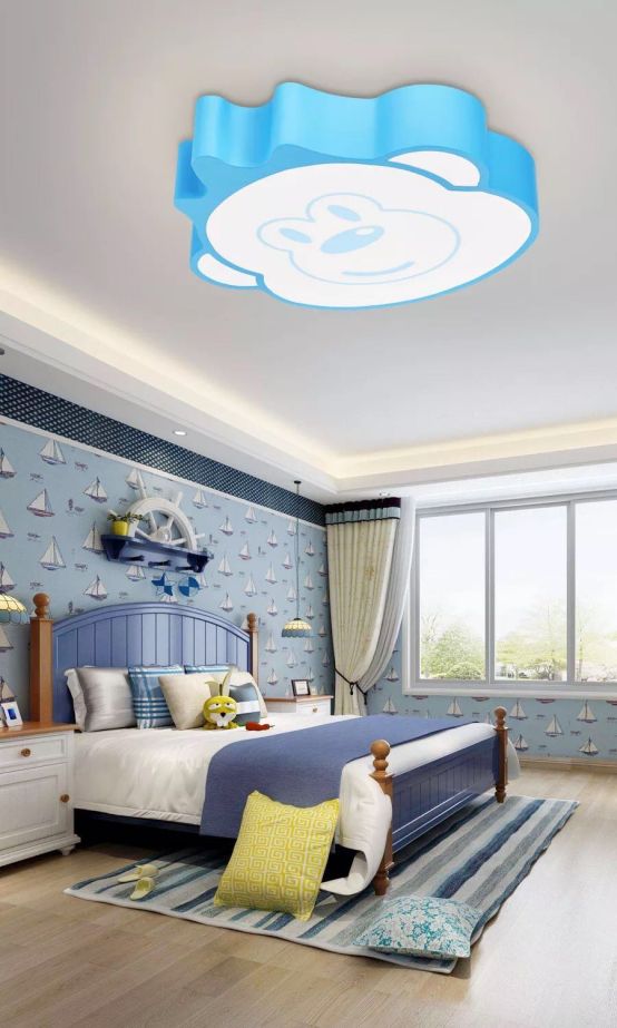 蓝色的顽皮猴,清新中带着点孩童的酷guy的范,既有创意同时也不失童心,适合搭配简约或者略个性的房间,更容易得到阳光小男孩的喜爱。