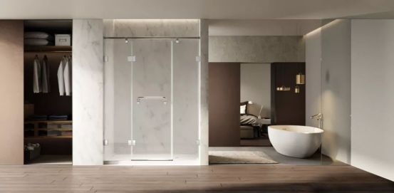 IO3领先的科技创新,更静音、更顺畅、更安全,同时内敛轻奢,极简美学,再定义无框推拉淋浴房。