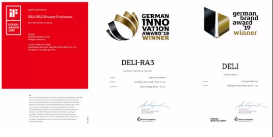 德立携手德国凤凰设计室演绎“不凡设计”,新品RA3、EA5、IO3以极简设计和人性化体验,颠覆行业传统,极尽诠释出科技、品质、艺术的完美融合。其中德立RA3荣获2019年德国创新奖及2019 iF国际设计大奖(被誉为国际工业设计“奥斯卡金奖”),德立淋浴房获得2019德国品牌奖,而德立EA5则成为该奖推荐产品,完美诠释功能性与美学性兼收并蓄,体现了德立对于用户体验的极致而苛刻的追求。