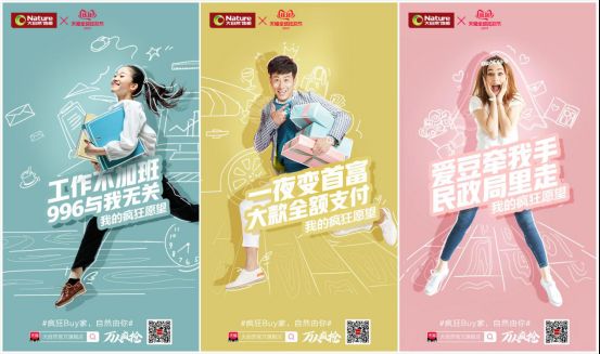 抓住人们这一消费习惯和消费心理,各大品牌在双11之际各出奇招。而大自然家居更是结合了其“我们的自然生活”的年度品牌基调,将营销传播战线延展至整个11月,提出了#疯狂Buy家 自然由你#的价值主张,倡导自由购物、自然生活的理念,并以线上线下优惠活动加持,鼓励人们疯狂Buy家,享受购物的乐趣。传播主题年轻化的语言,不仅提高了传统家居品牌的年轻度,更进一步贴近了年轻圈层,为扩大目标市场而蓄力。