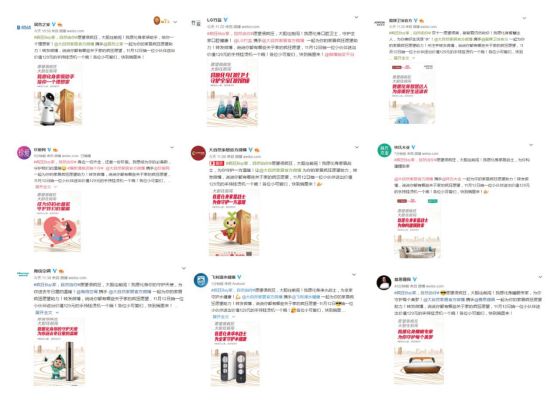 为了顺应天猫大IP的流量趋势,大自然家居延展天猫的愿望体,在双微上特意打造了#疯狂愿望11实现#话题,发出疯狂愿望海报,鼓励人们晒出疯狂愿望。并与慕思寝具、飞利浦、居然之家等八大品牌进行微博联动,助力大家实现关于家的疯狂愿望。系列话题对消费者进行的情感营销,产生了社交裂变,从而为品牌带来了不少的曝光量和影响力。