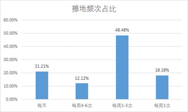 在地面清洁频率方面,数据显示,大部分家庭每周擦地1-3次,每天擦地的家庭占比超过20%。
