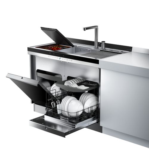 作为第三代洗碗机的开创者,它在拥有其他类型洗碗机优点的基础之上,对洗碗机容量、水槽、果蔬清洗机进行了重大创新,并推出碗柜和残渣处理功能,满足了消费者对洗碗机的更多需求,是一款能适用于厨房众多使用场景的集成厨房电器。