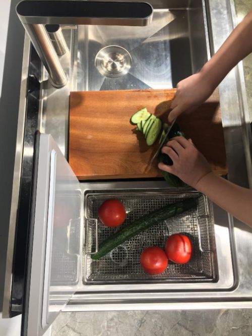 此外,洗碗机采用的复式阶梯槽体,有效扩展了厨房操作台面,取菜、切菜、装盘等厨房作业一气呵成,小厨房也有大空间。