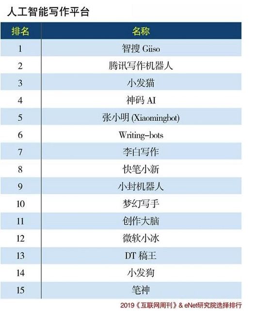 据了解,目前,Giiso写作机器人在媒体领域已得到应用,如深圳报业集团晶报社、济南时报新媒体等平台已经开始使用Giiso自主研发的写作机器人,用于部分文章的写作。在2019年互联网周刊 & eNet研究院评定的人工智能写作平台排行中,Giiso荣登榜首。