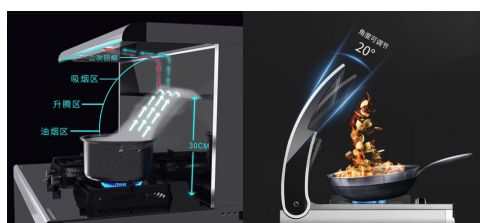 ▲ 厨壹堂B7Z(左)火星人X7Z(右)吸油烟原理图对比